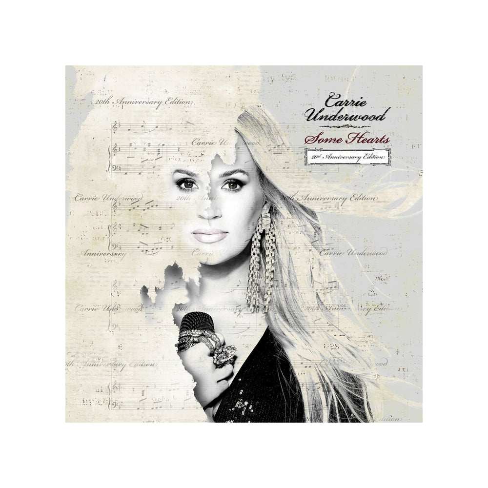 Canvas fabric poster of Carrie Underwood with music note artwork for Some Hearts 20th Anniversary. Available in 3 sizes.